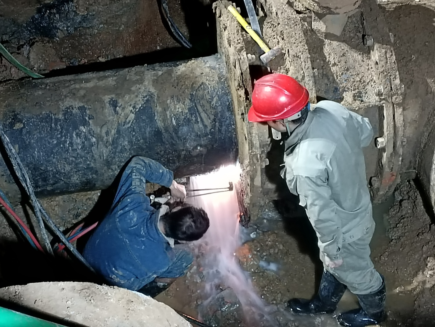 晚上10點,更換工作正式開始,關閘止水、排空積水、拆除舊蝶閥、安裝新蝶閥,流程看似簡單,但每道工序都有嚴格的操作規程,需要現場每個人的付出和配合。時值倒春寒天氣,現場寒風陣陣,工作坑內更是寒氣逼人,但維修人員全然不顧,搶時間,爭速度,分工協作,輪流上陣,連續作戰。