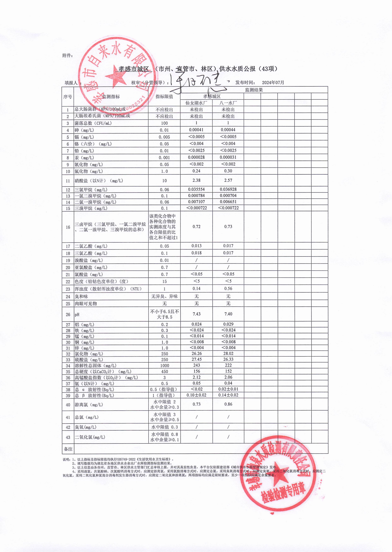 2024年7月水質(zhì)報告