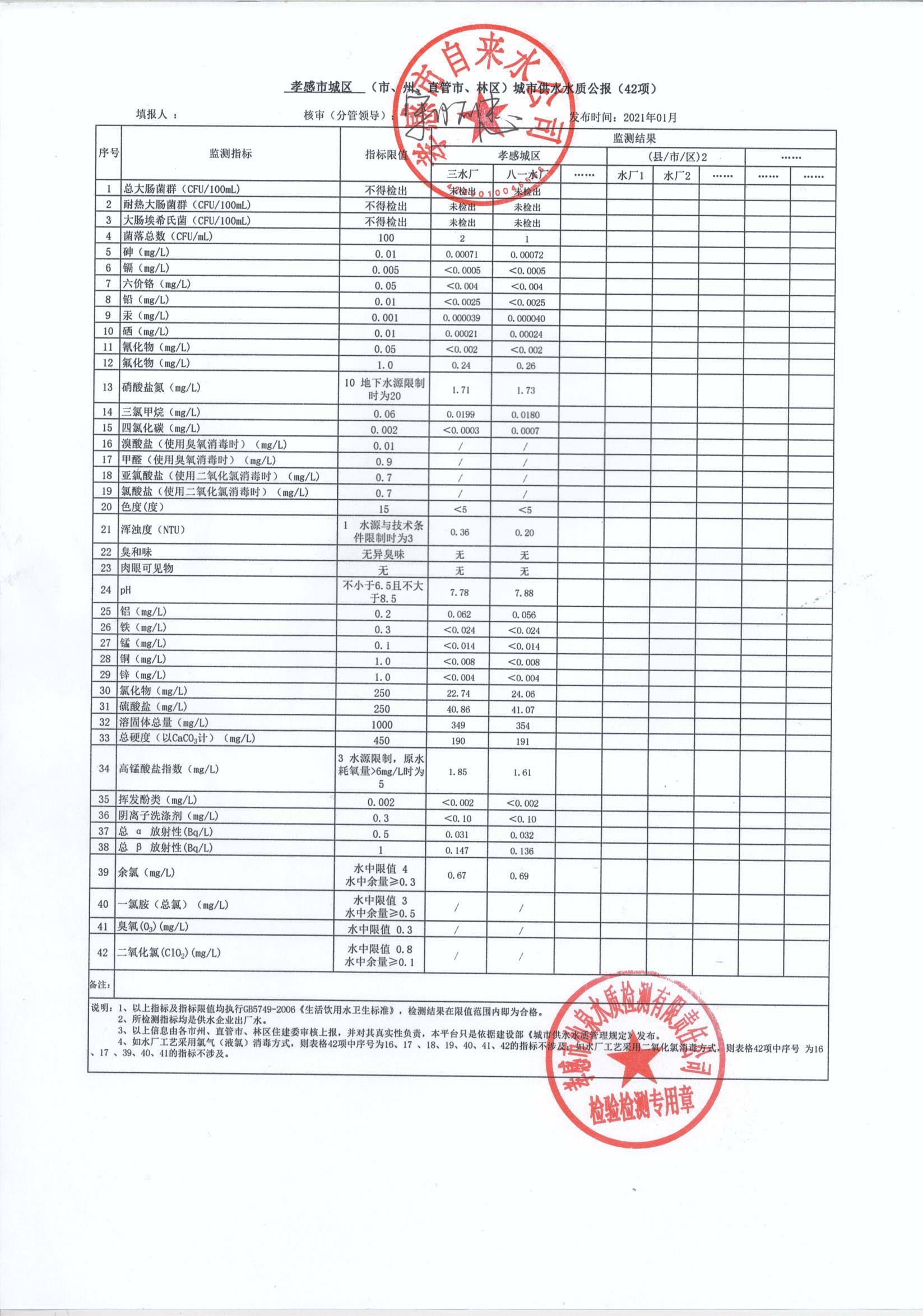 2021年1月水質報告