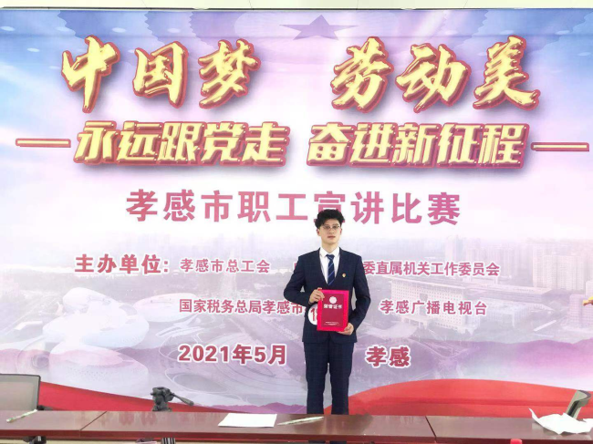 為慶祝建黨一百周年,推動群眾性主題宣傳教育活動走深走實(shí),5月8日,“中國夢·勞動美——永遠(yuǎn)跟黨走 奮進(jìn)新征程”孝感市職工宣講比賽決賽舉行,公司新員工梁航參加了此次演講比賽。